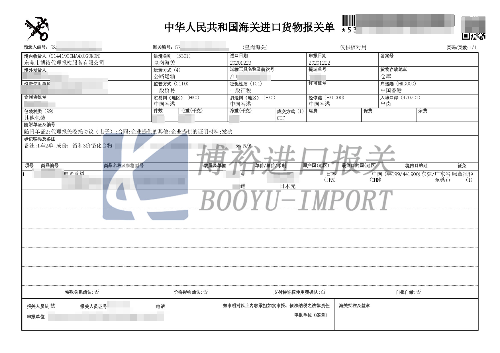 1、申報要素的填寫要將一切成分相加得出100%,不然商檢無法通過。取樣化驗時,量為1KG左右;